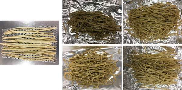 El fettuccini se puede fortificar entre un 5% y un 30% con moringa germinada (Figura 2), lo que aumenta la calidad nutricional y los atributos saludables de una masa convencional.
